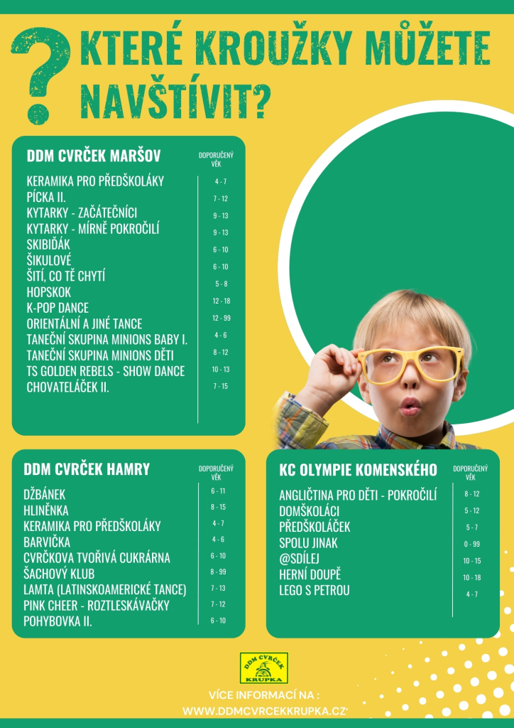 ✨ Vy jako rodiče si pak můžete v klidu rozmyslet, který kroužek je pro vaše dítě ten pravý.
